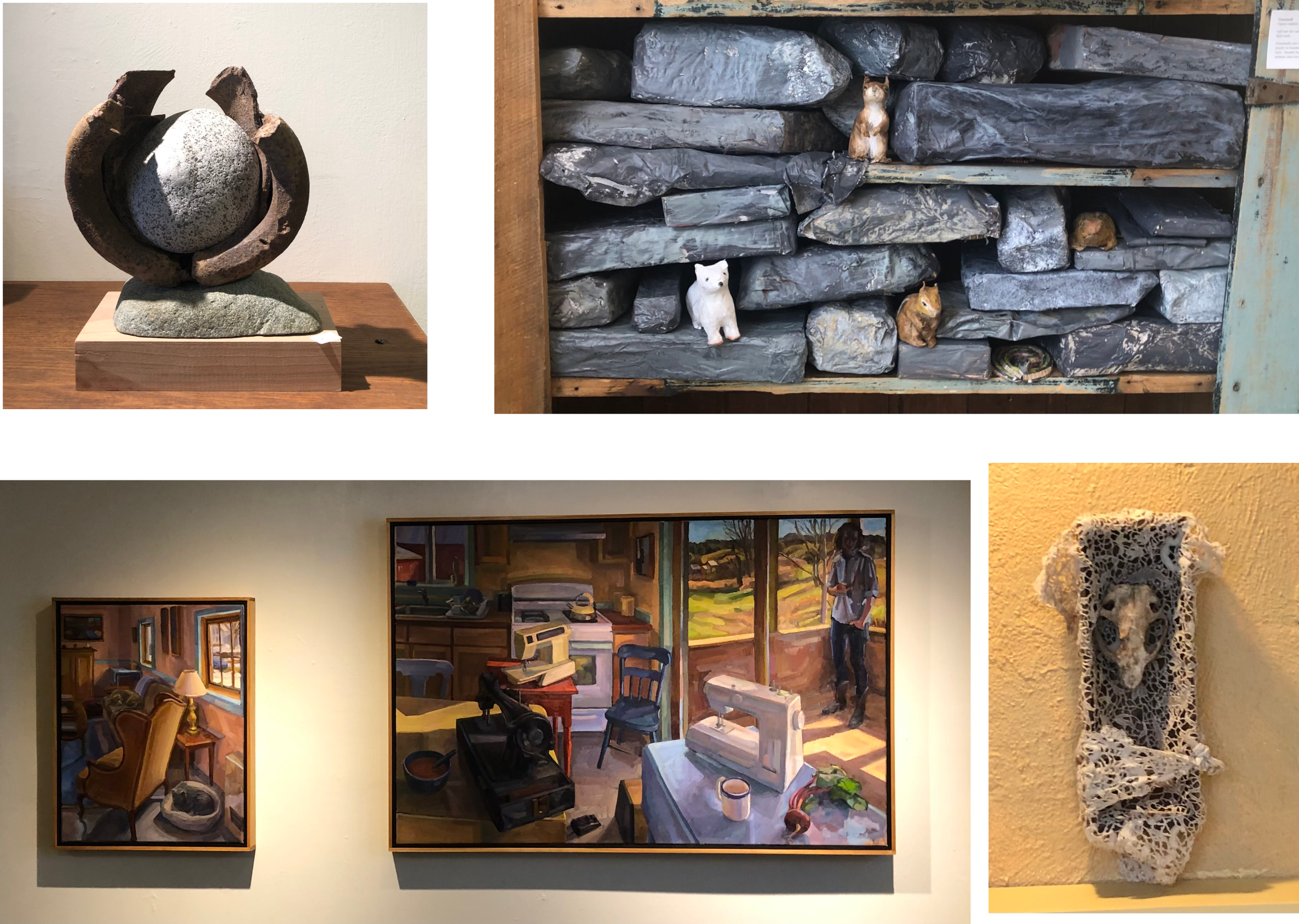 We show the work of local artists — assemblages, porcelain, watercolors, oil, papier-mâché, fiber arts, and more — in 4-5 shows a year.